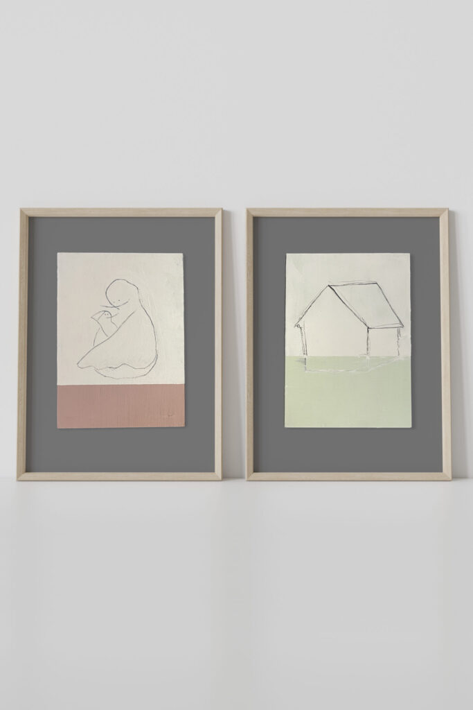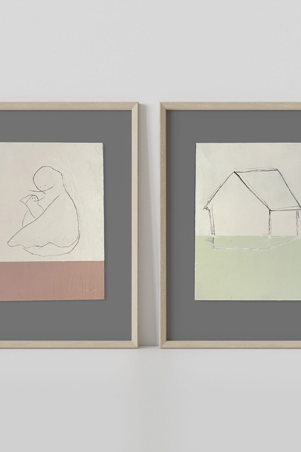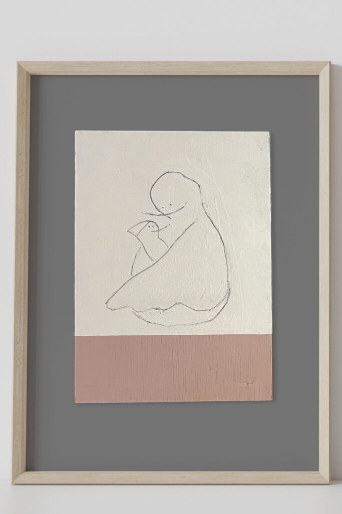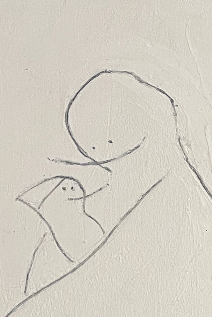 With each pass of the twig pen over the half-dry paint, shapes and a quiet presence gradually came into relief.